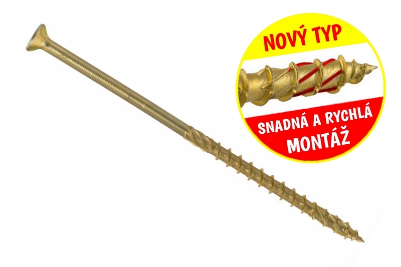 - Konstrukční vrut do dřeva KLIMAS 8x160 TORX zápustná hlava TX40 žlutý Zn (50 ks v balení)