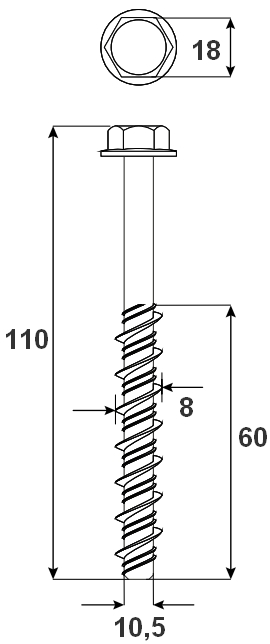 - Tvrzený šroub do betonu 10,5 x 110 mm šestihranná hlava s límcem SW13 (50 ks/bal)